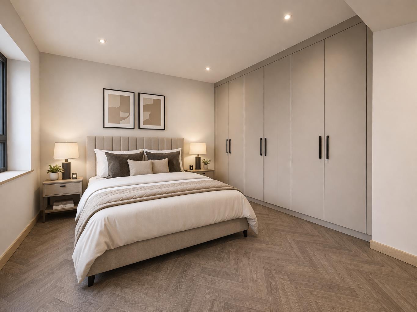 A newly completed three-bedroom duplex apartment, forming part of an impressive conversion of a former commercial building into high-quality residential accommodation. Finished to an excellent specification throughout, the property is arranged over the ground and lower ground floors and offers well-balanced, contemporary living. The property is accessed via a private entrance on the ground floor. Upon entry, there is a spacious and well-appointed shower room/WC, along with a useful storage/bike store cupboard. The first bedroom is generously proportioned and benefits from a large window, bespoke fitted wardrobes with integrated lighting, and a stylish ensuite shower room. A second double bedroom is also located on this level, again featuring built-in wardrobes and excellent natural light. A striking staircase with glass balustrade leads to the lower ground floor, where the accommodation opens into a substantial open-plan kitchen, living and dining space. This area has been thoughtfully designed for modern living and entertaining, with a high-specification kitchen incorporating integrated appliances, double oven, gas hob and extractor, complemented by feature lighting including both uplighting and downlighting to the units. Large sliding doors provide an abundance of natural light and lead directly onto a private patio area, creating a seamless indoor-outdoor connection. Also on the lower ground floor is a contemporary family bathroom, finished with high-quality tiling and fittings, along with a third double bedroom featuring fitted wardrobes with integrated illumination. Throughout the property, there is herringbone flooring with underfloor heating, alongside modern systems for heating, hot water and fire safety, ensuring both comfort and efficiency. Please note that as a newly completed conversion, Council Tax and EPC ratings are yet to be confirmed. *some furniture has been digitally added